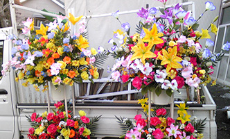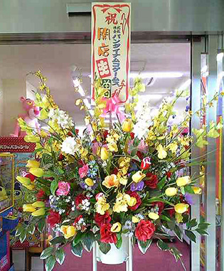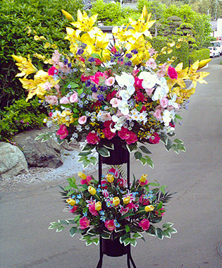 | 祝用スタンド花 | 上部一段 ¥15,000~(税抜) 上下二段 ¥20,000~(税抜) ※横浜市内に限り配送無料でお届け致します。 |