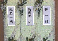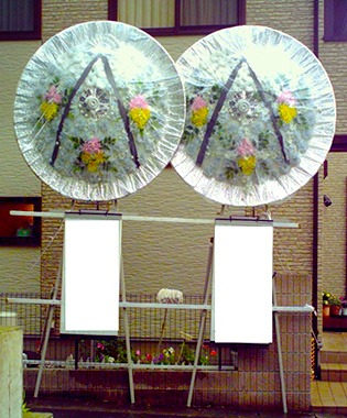 | 花輪のサイズ | 高さ:約3.3m 直径:約1.8m ※横浜・川崎・東京で使われている一般的な花輪の大きさです。 |